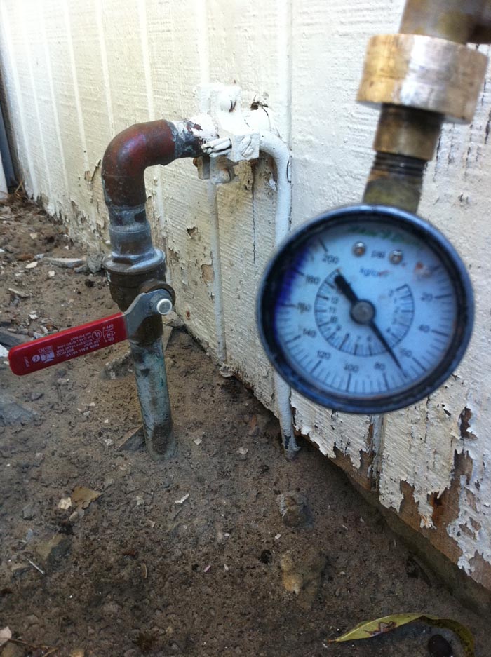 A complaint of a very high water bill in St. Petersburg FL led to the scheduling of a leak detection. Leaking plumbing pipes in St. Petersburg is a very common thing. Often times plumbing pipe leaks are located underground where the home or business owner cannot see them. Plumbing pipe leaks underground are known in Florida and other parts of the southeast as slab leaks. Slab leaks are a leading cause of high water bill symptoms in St. Petersburg Florida. With our state of the art water leak detection equipment we are able to locate slab leaks with extreme accuracy. When we arrive at a property in St. Petersburg with a high water bill, we always perform a pressure test on the water pipes to ensure a slab leak is the cause of a high water bill. As you can see in the pictures below, we located a plumbing pipe leak underground at this St. Petersburg property which was the cause of the high water bill.