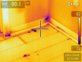 A Tampa Bay homeowner contacted I Find and Dry Leaks in regards to an infrared water leak inspection. The owner of the Tampa Bay home has the home on the market and lives out of town. The realtor came to the house in order to show it to a couple, and found half of the house flooded with water. A plumbing pipe located in an outside block wall began leaking and nobody was at the property to correct it in a short period of time. It is essential to stop plumbing leaks shortly after they start and get them dried properly in order to prevent possible mold growth. With our ultrasonic leak detection equipment we were able to locate this plumbing pipe leak without causing any damage to the property. We currently have state of the art dryout equipment in this home working to dry the structure. As you can see in the pictures below, the water soaked up into the walls in certain areas. In some areas the water soaked up over 2 feet.
