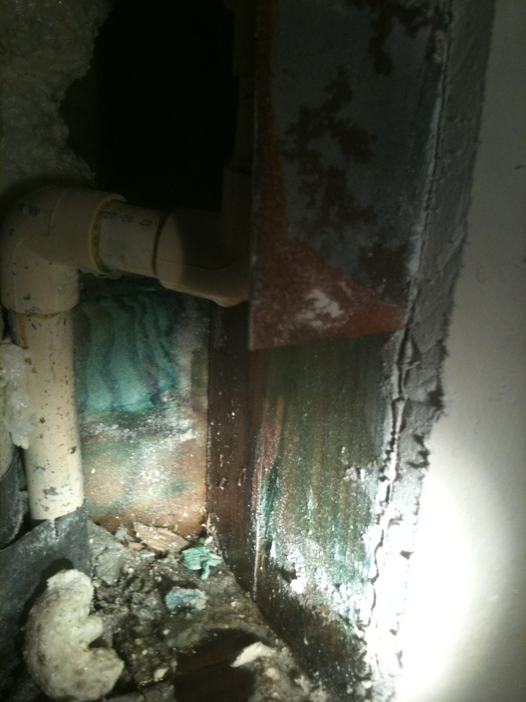 Leak Detection Wesley Chapel. This newer home in Wesley Chapel experienced water damage associated with a small plumbing pipe leak. The Wesley Chapel home was built using CPVC plumbing pipe. This is a newer plastic plumbing pipe that typically does not leak. The plumbing pipe leak was located on a CPVC glue joint that after time began to slowly fail. Typically when we find Wesley Chapel plumbing pipe leaks it’s due to a joint coming completely unglued and coming apart causing a large amount of water damage to the home. Our infrared leak detection equipment proved to be VERY valuable in located this plumbing pipe leak buried deep inside of a wall. The plumbing pipe leak was caught quickly and no signs of mold were present.