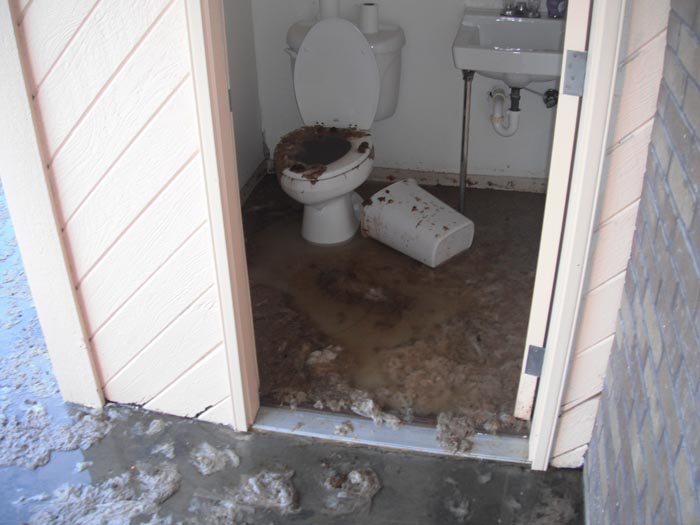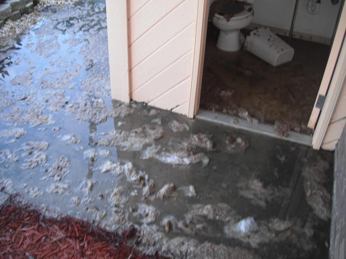 A condo complex in Clearwater, Florida had a sewage backup which led to sewage damage in their pool area club house. Something was put down the plumbing lines which caused a backup of the condo building. It so happened that this Clearwater Florida complex’s lowest point happen to be the pool bathrooms. This led to a large amount of sewage discharging from the toilets and running out of the bathrooms and onto the pool deck. Not only did we have to clean up this Clearwater sewage, we had to disinfect the entire bathroom area as well as the pool deck. Raw sewage contains many viruses and pathogens including Hepatitis. It’s very important to clean sewage back up problems properly in order to make sure it’s safe for humans and pets. As you can see in the pictures below, we have a very good sewage clean up team that can handle sewage clean up jobs no matter how big or small.