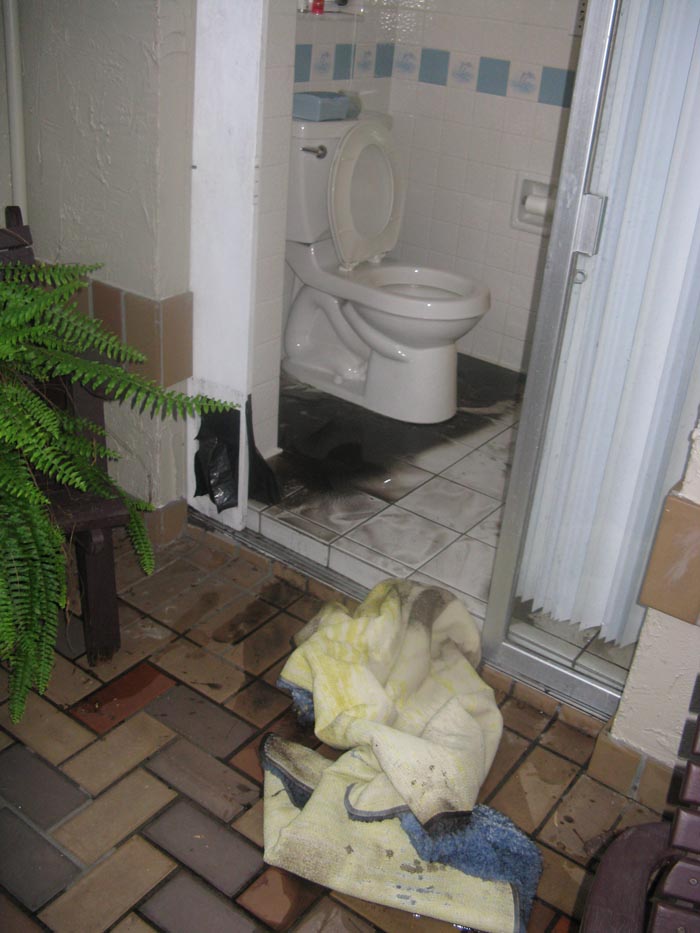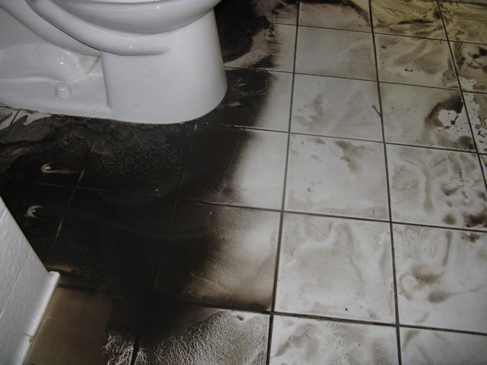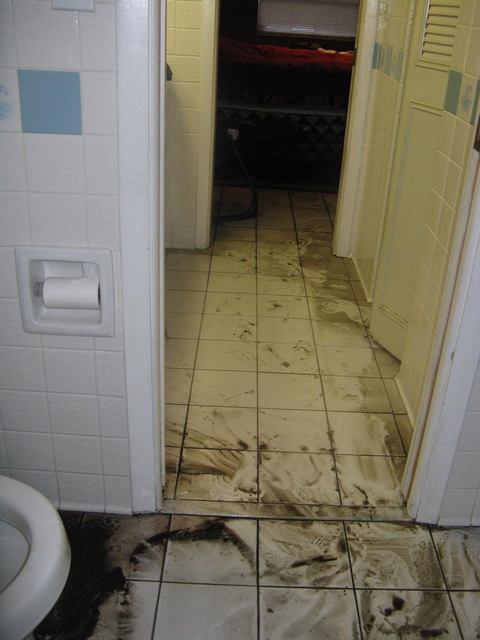 A Largo homeowner’s sewer backed up while they were away on vacation. This particular home in Largo has a water softener installed on their incoming water lines. A water softener will go into regeneration mode on a set schedule to ensure the water supplying the Largo home is treated properly. The waste water from the regeneration cycle is then discharged into the city sewer line. Since the sewer line was clogged, this waste water backed up and eventually overflowed a toilet on the property. This sewage leak continued for over 12 days until it was noticed. As you can see in the pictures below, sewage can do a lot of damage to a property and its contents. If leaking water is not cleaned up in a timely fashion, mold growth will occur.