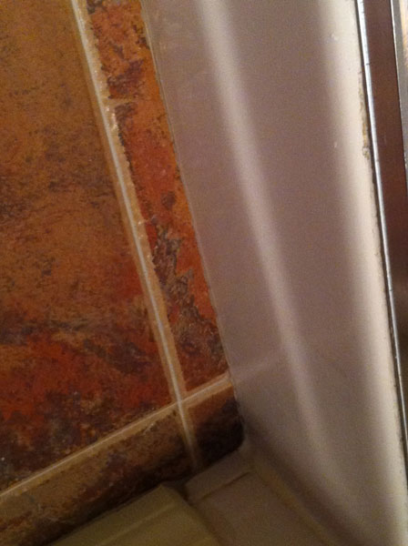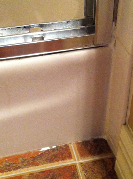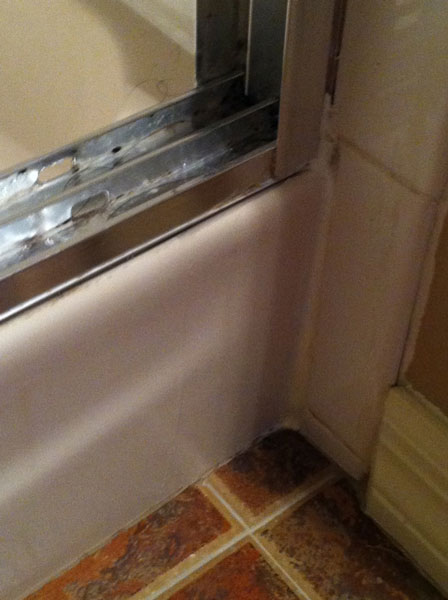 Tampa bathroom leak. A Tampa bathroom had a water leak which the Tampa homeowner was unable to find. Water leaks in Tampa bathrooms can be difficult to find. We use ultrasonic equipment as well as infrared equipment in order to pinpoint water leaks in bathrooms in the Tampa area. There are a few things that Tampa homeowners can check themselves before having to hire a leak detection company in order to locate water leaks in the Tampa area. As you can see in the pictures below, bath tubs with shower doors attached to them are notorious for leaking if they aren’t maintained or installed properly. Ensure you keep the caulking up to date and cleaned on bath tubs with shower doors installed. Once water leaks occur and they aren’t handled effectively and quickly they can lead to the effects of water damage which will lead to black mold or mold growth. If you have shower doors in your bathroom it’s important to check them for leaks on a regular basis.