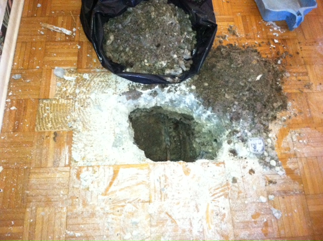 High Water Bill Dunedin. High water bills in Dunedin Florida are usually caused by water pipes leaking underneath Dunedin concrete slabs. These underground leaks are also known as slab leaks. The team at I Find Leaks has been located water leaks in Dunedin causing high water bills for over a decade. High water bills can be very frustrating for Dunedin homeowners if they don’t know where the water is leaking. When slab leaks occur underground, you typically won’t see any signs of water inside of the property. Over time the underground water leak can cause the Dunedin soil to become super saturated and this will sometimes lead to Dunedin water damage or even Dunedin black mold or mold growth. Once you have a symptom of a water leak, it’s important to rectify the situation as soon as possible. As you can see in the pictures below, this Dunedin water leak was located underneath the living room floor of this Dunedin home. With our state of the art infrared water leak inspection equipment as well as the use of ultrasonic water leak detection equipment we are able to pinpoint underground Dunedin water leaks within just a few inches. In order for the water leaks to be repaired, a larger hole is necessary in order for Dunedin plumbers to get their tools in the hole in order to repair the water leak.