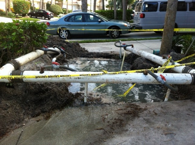 Water Leak Clearwater. A Clearwater property manager contacted I Find Leaks in regards to a water leak at one of their Clearwater properties. The water leak was under a very large tree and required the use of well points in order to pump enough ground water out from around the leaking pipe in order for the Clearwater Plumbing company to repair the leaking pipe. Water leaks in Clearwater can occur at any time. It’s a great thing that this water leak didn’t occur inside a building or underneath a building. Water leaks of this magnitude can lead to water damage and flooded units in condo buildings. Water leaks inside that are not attended to can also lead to black mold and mold growth. We perform Clearwater mold removal services should you require mold removal after a water leak has occurred. We have located hundreds of water leaks in the Clearwater area over the course of just the past few months. Should you have a question about a water leak, give us a call.