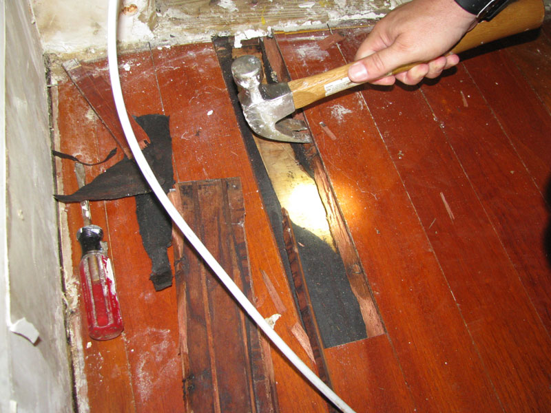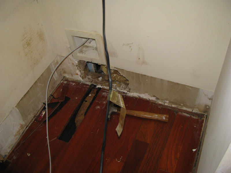 A Shore Acres home owner contacted I Find and Dry Leaks in regards to a water leak in the wall behind their refrigerator. The water leak wasn’t obvious so an infrared water leak detection service was needed. We use ultrasonic water leak detection equipment in addition to our infrared water leak detection equipment in order to locate hidden water leaks. Water damage is caused by water leaks. It’s important to find and address the source of the water leak in order to prevent further water damage to your Shore Acres home. Water damage can be caused by plumbing pipe leaks, high humidity, roof leaks, structural leaks and water line leaks. It is important to address the first signs of water damage when you see water damage symptoms in your home or business. Water damage can cause issues to dry wall, wood flooring and other Florida building materials. If water leaks and water damage in Shore Acres isn’t identified and corrected quickly, this could lead to mold removal Shore Acres projects. Mold removal in Shore Acres can be much more invasive to Shore Acres properties than water leak detections and water damage restoration services are. As you can see in the pictures below, this water leak already caused water damage to the wood flooring located underneath the refrigerator in this Shore Acres home.