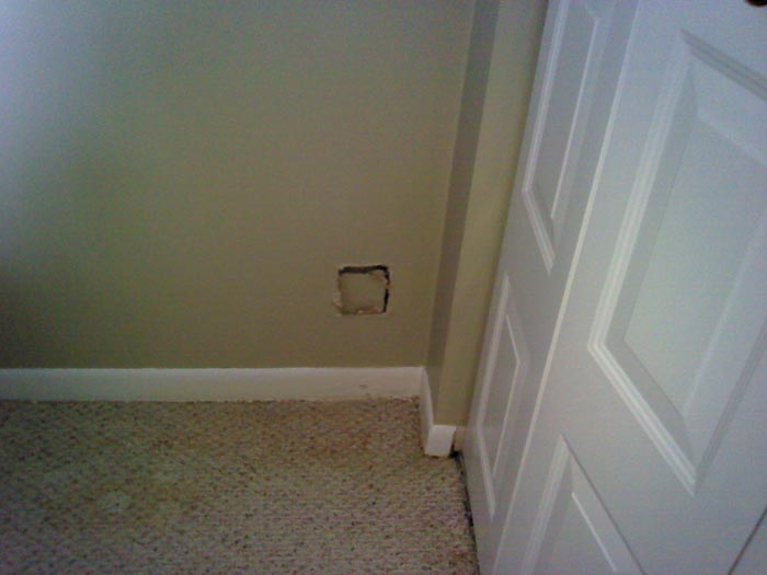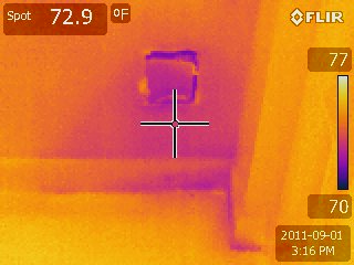 A Clearwater homeowner contacted I Find Leaks in regards to a musty smell in their living room as well as a small area of damp carpet. With our infrared leak detection inspection equipment we are easily able to identify problem areas in walls, ceilings and floors without doing any destruction to your Clearwater area property. As you can see in the pictures below, this water leak turned out to be an AC condensate pipe leak in the wall where it couldn’t be seen. With our infrared leak detection equipment we can “see” through walls in order to find the problems inside of them. If your water leak is underneath concrete or outside of your property under trees or even under your driveway we have ultrasonic leak detection equipment that can locate those leaks. If a water leak has caused flooding or water damage inside of your property we have a team of water damage restoration professionals that can dry up the water damage and then restore your property to like new condition in record time. Water leaks should be dried quickly and effectively in order to prevent problems with mold growth.